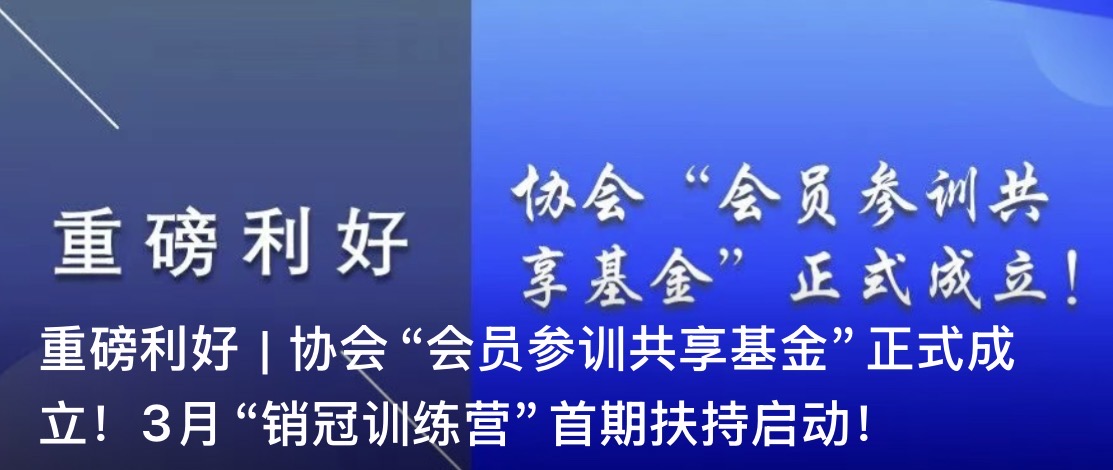 重磅利好|协会“会员参训共享基金”正式成立!3月“销冠训练营”首期扶持启动!