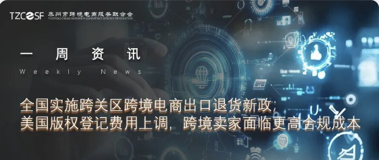 全国实施跨关区跨境电商出口退货新政;美国版权登记费用上调,跨境卖家面临更高合规成本